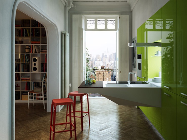 Los “nuevos solteros” requieren menos espacio, por motivos tanto de sostenibilidad económica como de simple administración del espacio a disposición, lo que supone una reducción total. Sin embargo, se trata a la vez de un público cada vez más exigente, un público activo, listo, a menudo amante del buen comer y beber. Un público gourmet, que reconoce el estilo, busca en el ambiente de la cocina espacios cada vez más “living” y placenteros con zonas de trabajo funcionales, atentos al detalle y a la tecnología, y aprecia el equipamiento de chef. Los nuevos amantes de la comida consideran que comer es más que nada “un placer para compartir con los demás” y una “pasión rica de significados y experiencias”. Y es natural que esta sensibilidad se exprese sobre todo en la cocina.