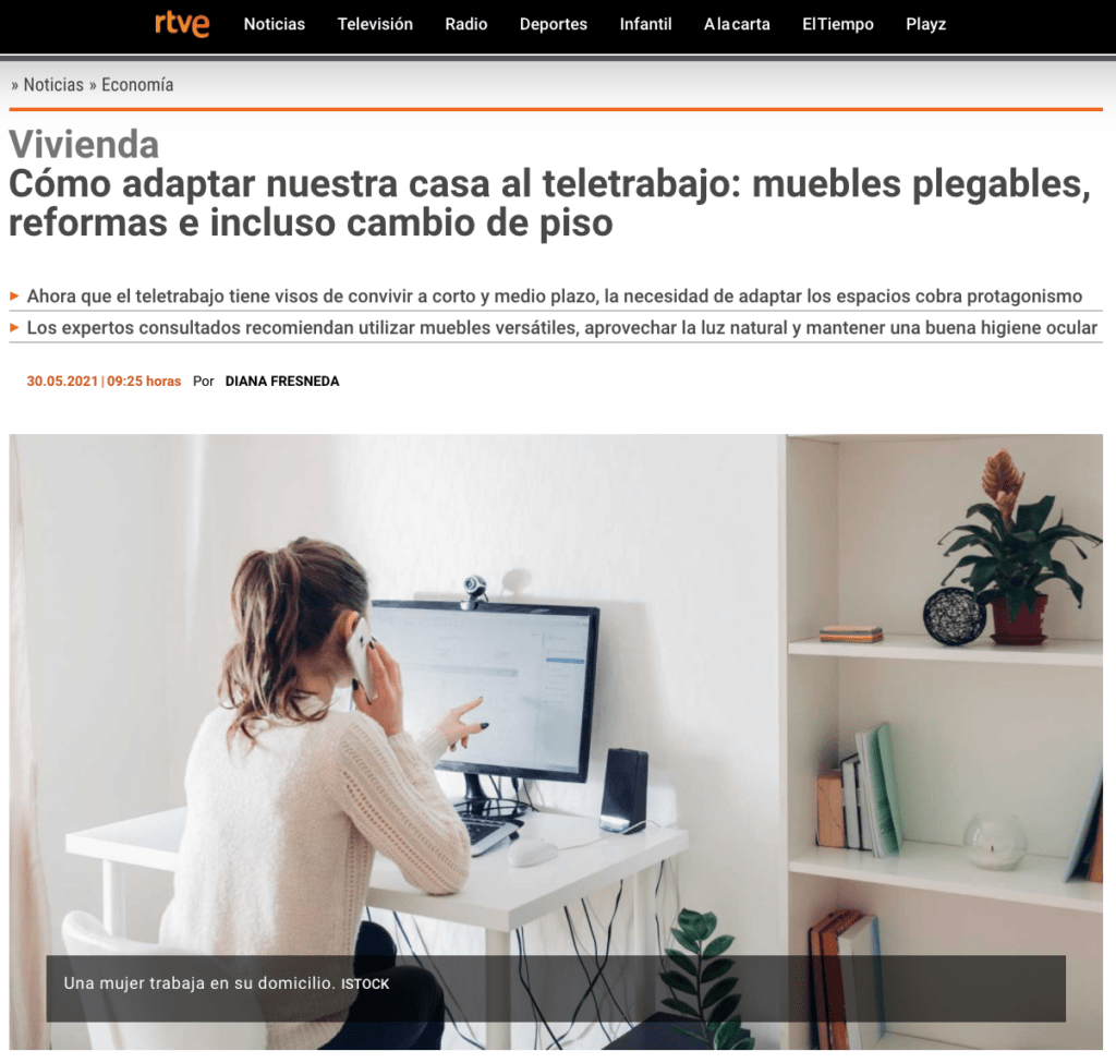 Desde el blog de RTVE en su sección sobre Vivienda nos contactaron para dar nuestra opinión como expertos en cómo adaptar nuestra casa al teletrabajo. Son muchas las opciones que tenemos ya sea aprovechando una reforma integral de vivienda como simplemente replanteando los espacios actuales de nuestra vivienda.